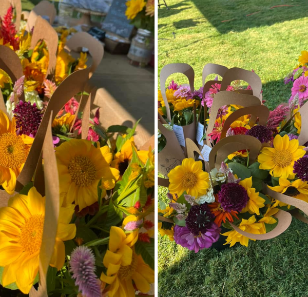 Wrapped bouquets can be custom ordered and priced according to flower availability and size. Bouquets come in traditional brown paper and ribbon/twine wrap or Bouquet Bags.